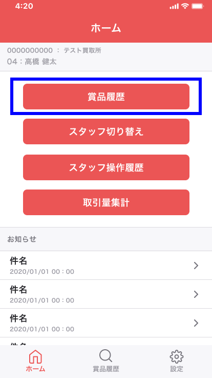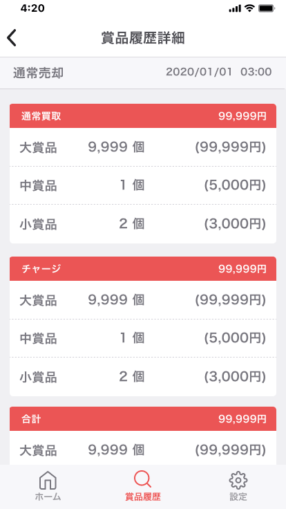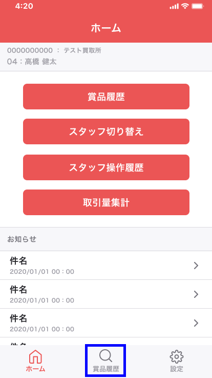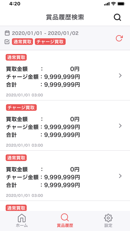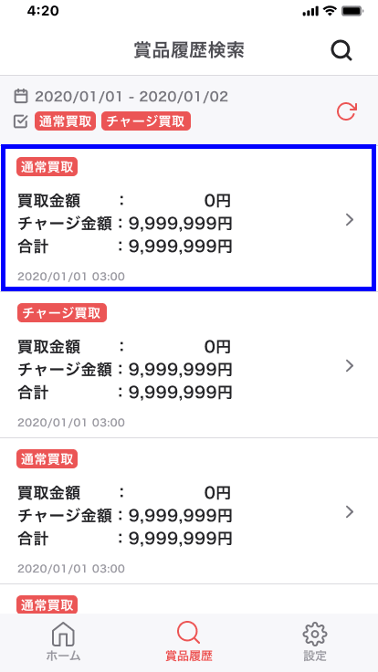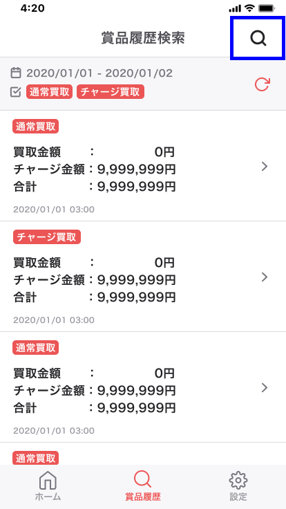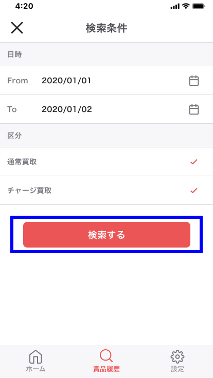 2.日時や区分を設定し、[検索する]をタップすると、条件に合った履歴が表示されます。