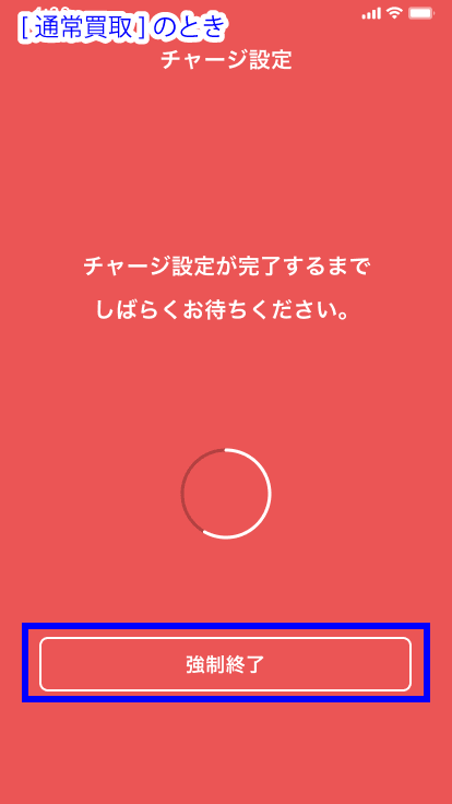 お客様の操作中、店舗側の画面には[強制終了]ボタンがあります。