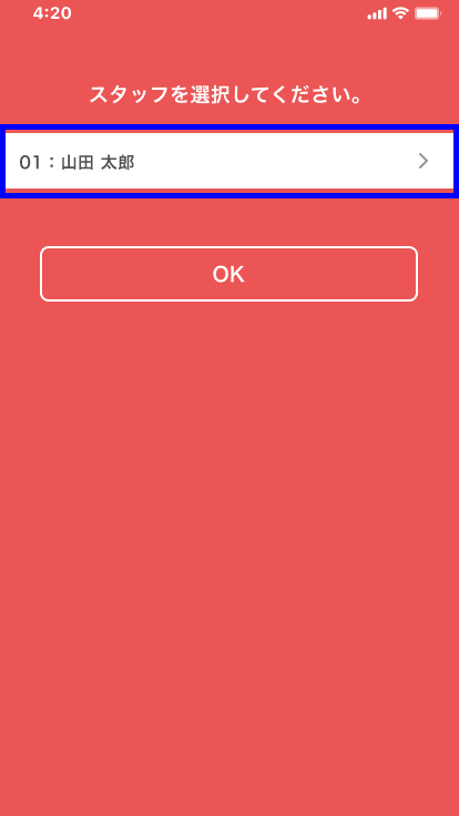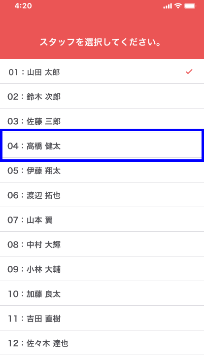 3.スタッフ一覧が表示されますので、切り替えたいスタッフをタップします。