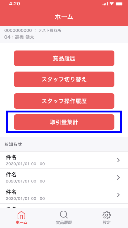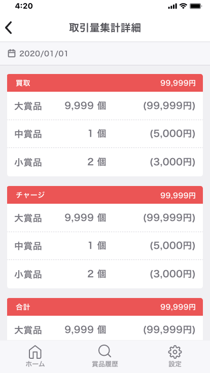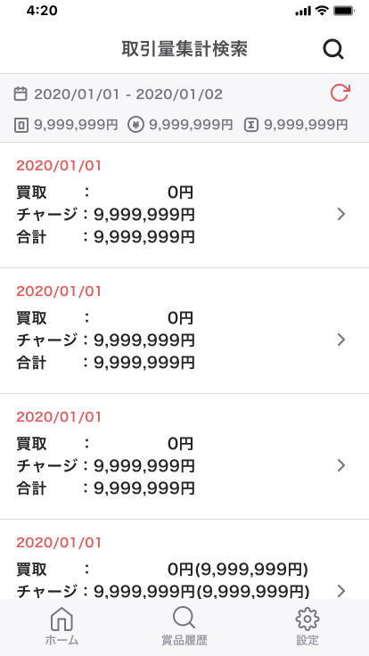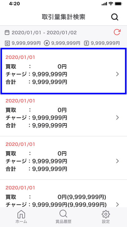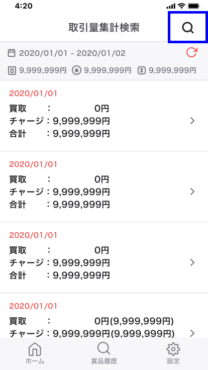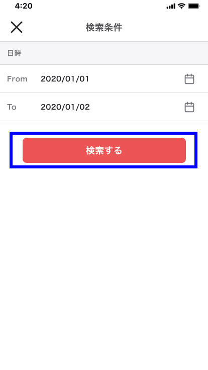2.日時を設定し、[検索する]をタップすると、条件に合った集計が表示されます。