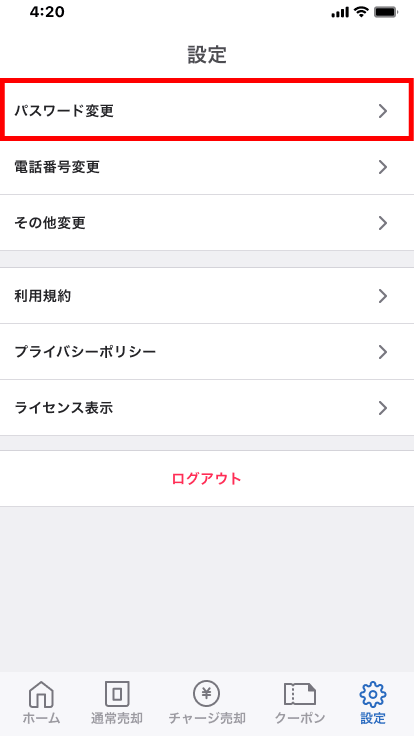 - 2.[パスワード変更]をタップします。