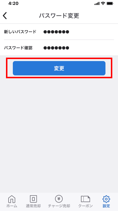 - 3.新しいパスワードを入力し、[変更]をタップします。
