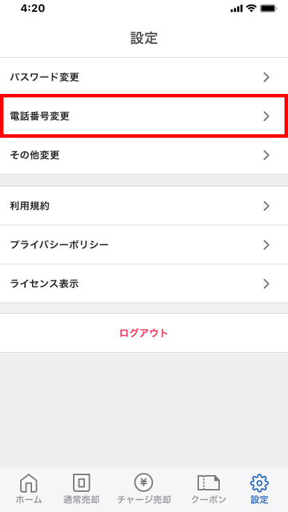 - 2.[電話番号変更]をタップします。