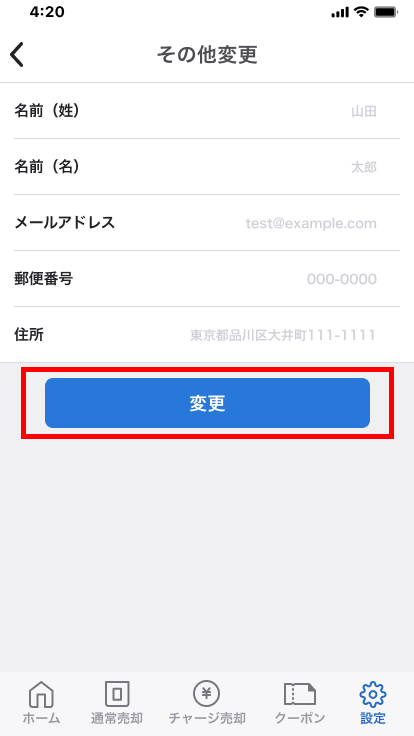 - 3.新しい情報を入力し、[変更]をタップします。