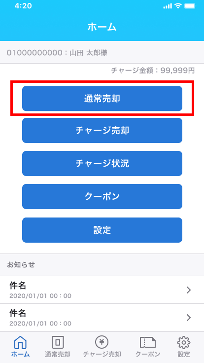 1.[通常売却]をタップします。