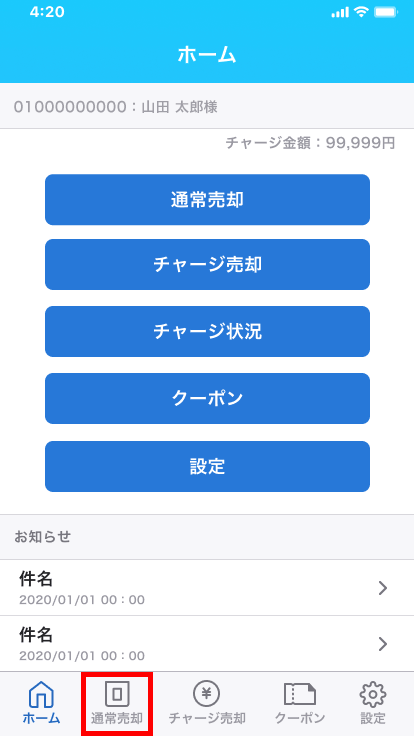 もしくは、メニューの[通常売却]をタップします。